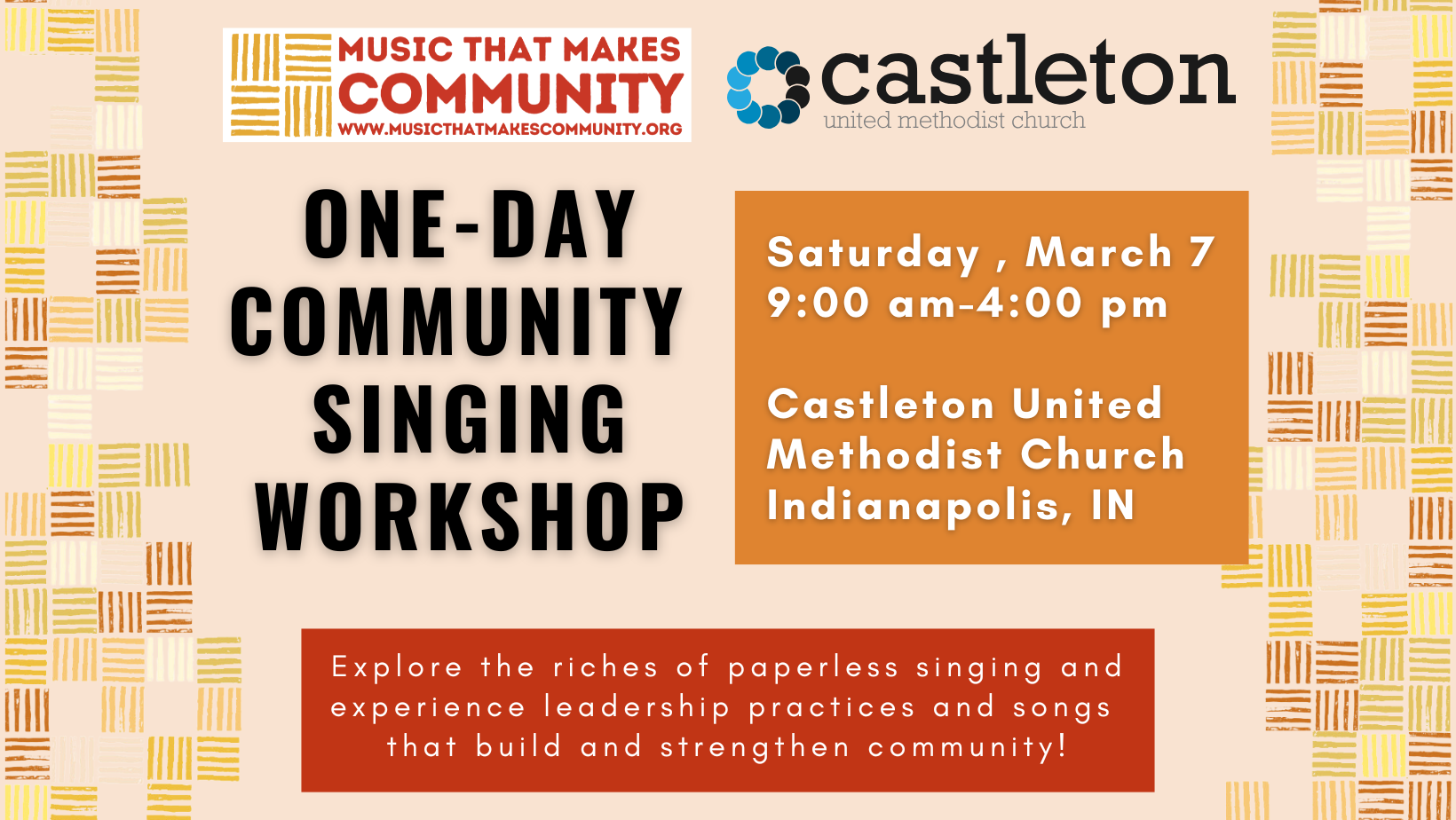 Music that Makes Community is excited to announce a One-Day workshop in Indianapolis, Indiana.