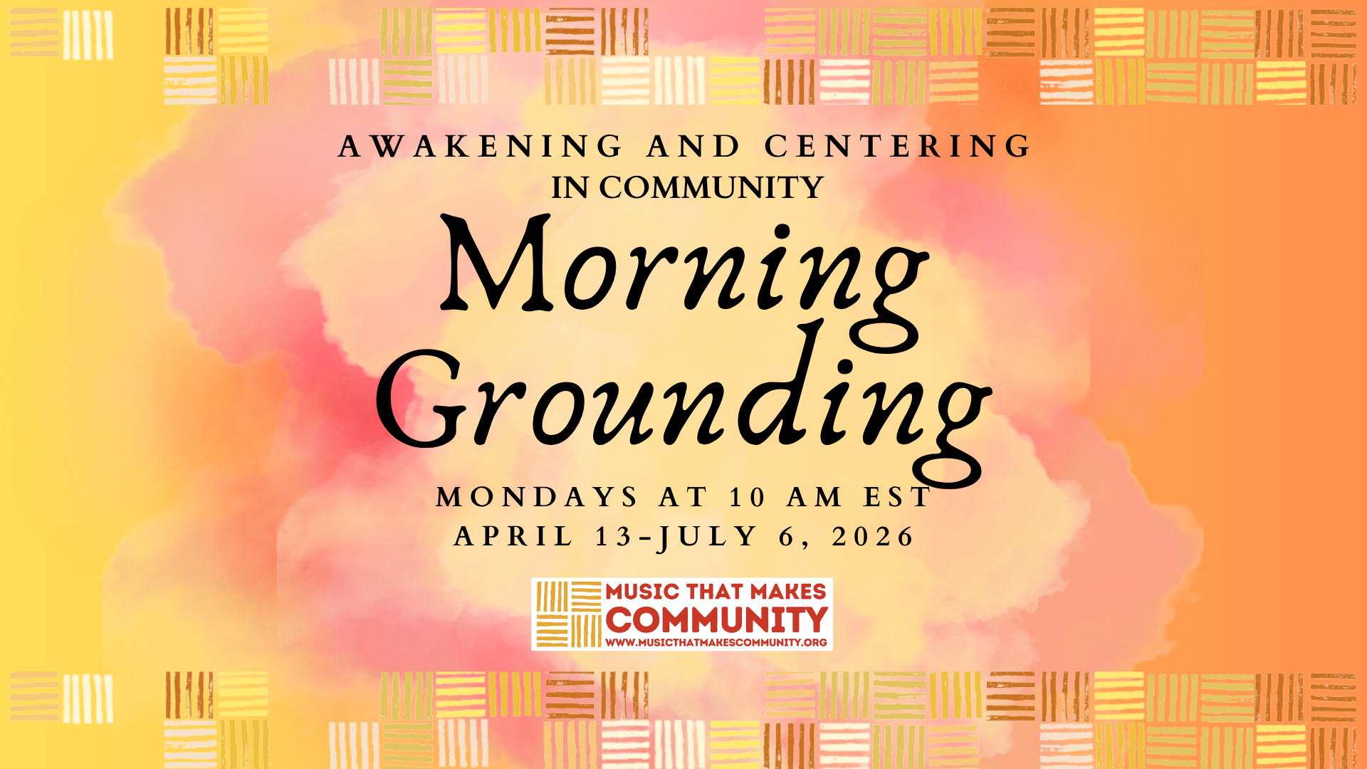 Join Music that Makes Community for a weekly touchstone that includes singing, silence, sacred text, and community connection. We'll gather at 10 a.m. EDT (9 CDT / 8 MDT / 7 PST) each Monday for a 30-minute gathering followed by coffee and conversation.